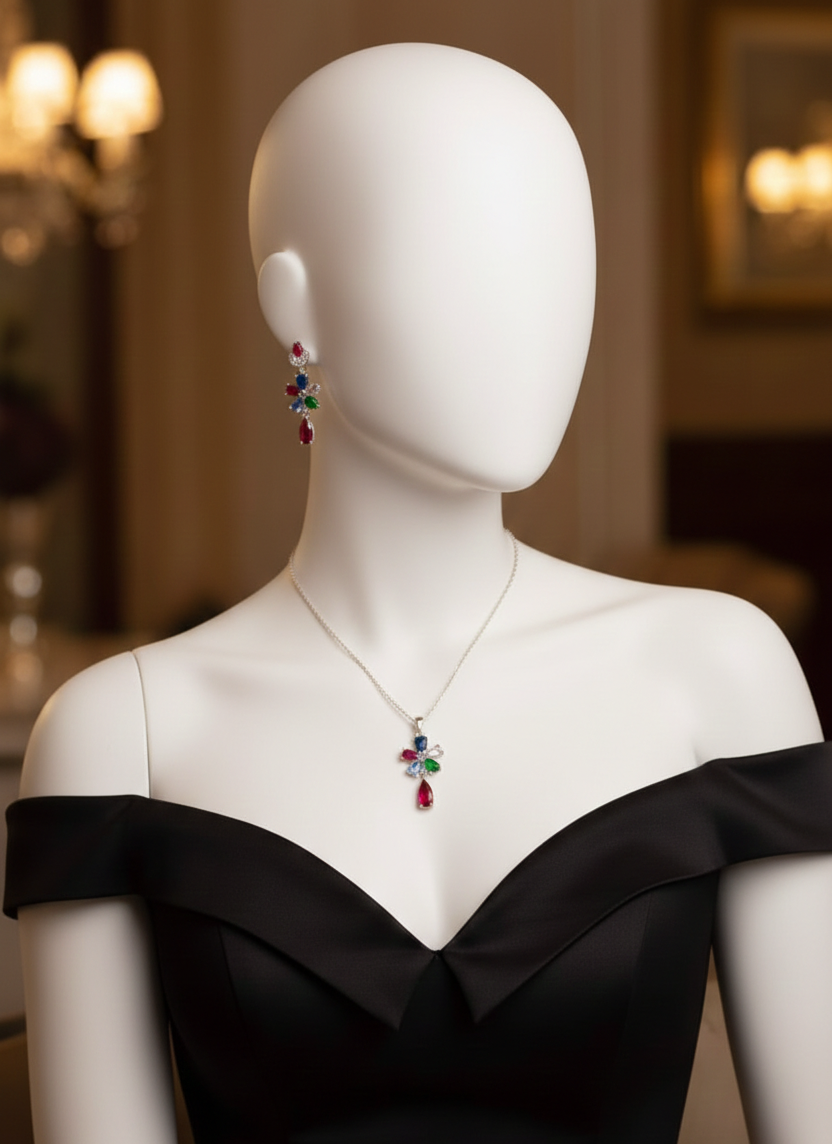 Multi Zircon Necklace Set – Elegant Bridal & Party Jewelry